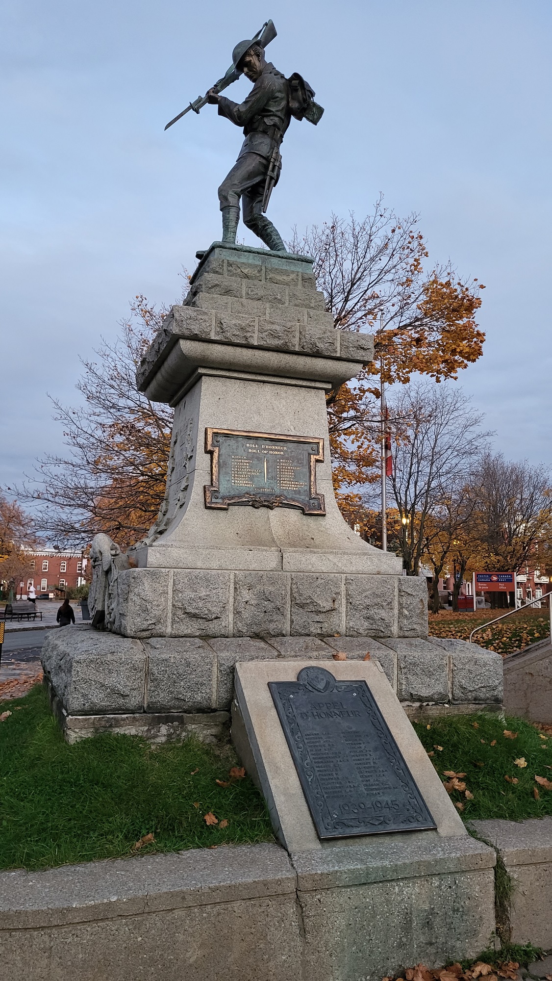 Monument to the Brave was erected in 1921 and dedicated to those killed in the First World War. It was created by Coeur de Lion MacCarthy whose brother, an officer in the 14th Battalion, posed as a model for the statue. It depicts and infantryman about to plunge his bayonet below. The two bronze Second World War Honour Rolls at the foot of the monument were installed in 1949.