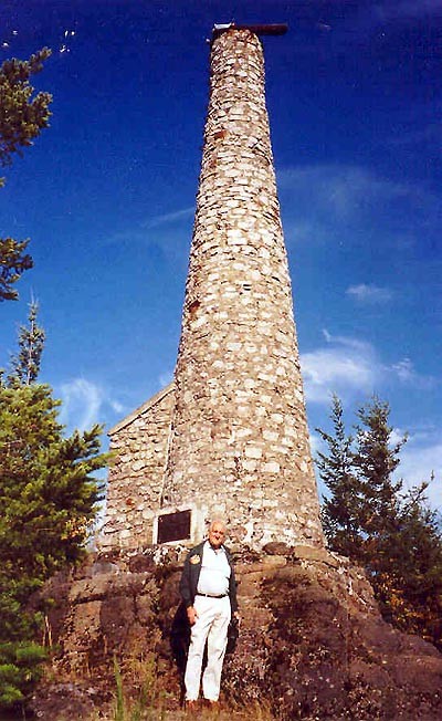 The memorial cairn on Mt. Prevost was erected in 1929 by Capt. J. Douglas Groves and the community in memory of those who had fallen in the First World War. Later, a second plaque was installed for those fallen in the Second World War. The memorial is constructed of granite and is over ten metres tall. Because of its size and location, it is visible from nearby highways.