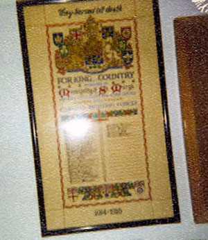 A framed Roll of Honour, behind glass with the 21 names of those who died in the First World War from the Municipality of St Mary's.