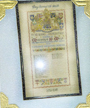 A framed Roll of Honour, behind glass with the 23 names of those who died in the Second World War from the Municipality of St Mary's. It was placed in St Mary's Memorial Hospital by the Royal Canadian Legion, Sherbrooke, Branch No 56.