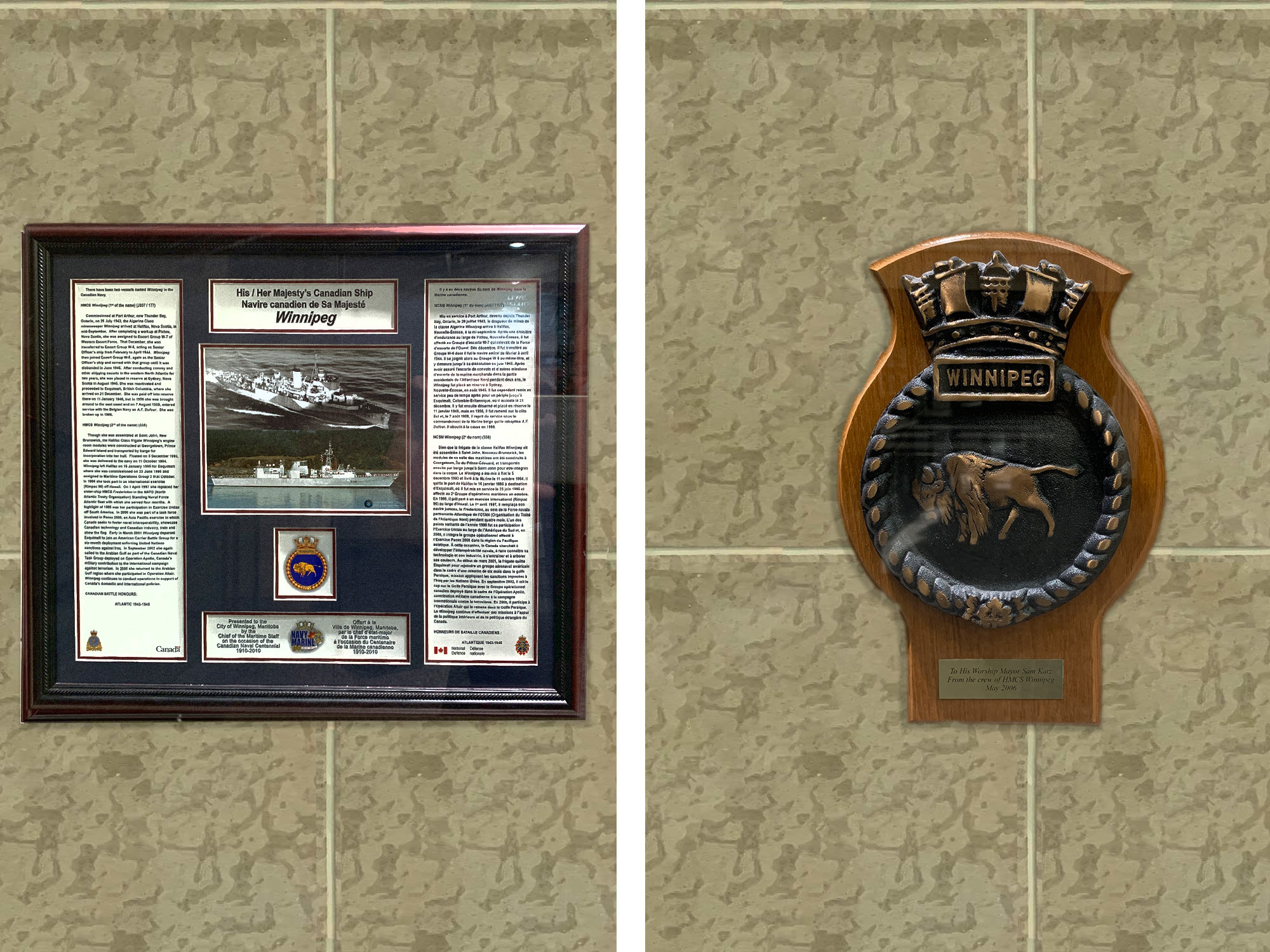 Winnipeg, Manitoba Type Other The Naval Display was installed sometime after 2006, but the exact date is not known. Visitor information Location Naval Display 510 Main Street Winnipeg Manitoba GPS Coordinates Lat. 49.8991265 Long. -97.1387972 display Expand 1 of 5 images surroundings Expand 1 of 5 images Her Majesty's Canadian Ship (HMCS) Winnipeg information Expand 1 of 5 images HMCS Winnipeg framed collage and Princess Patricia's Canadian Light Infantry framed print Expand 1 of 5 images Information on Her Majesty's Canadian Ship St. Boniface and Her Majesty's Canadian Ship Transcona Expand 1 of 5 images Table of contents