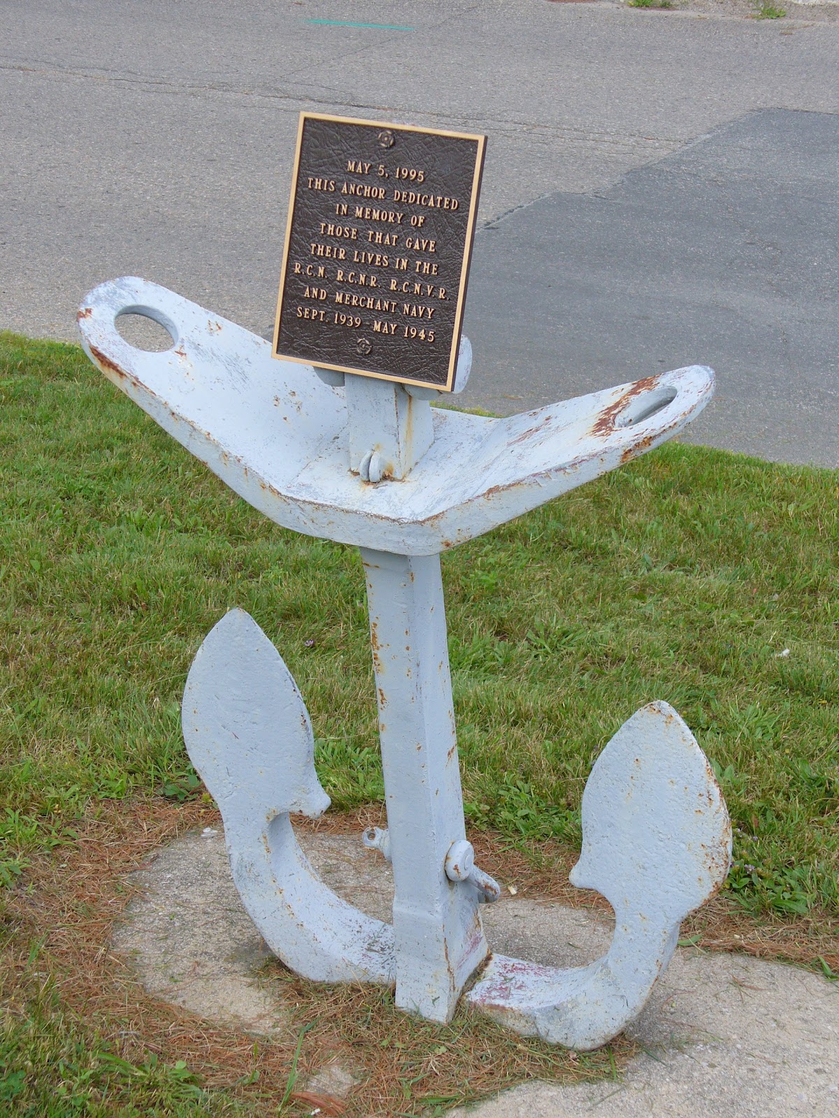 On May 5, 1995, this anchor was dedicated in memory of those that gave their lives in the Second World War while serving in the Royal Canadian Navy, Royal Canadian Navy Reserve, Royal Canadian Navy Volunteer Reserve and the Merchant Navy.