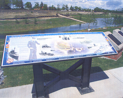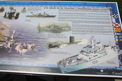 This memorial was erected by the Canada Lands Company, and unveiled on June 6th, 2010. This memorial is dedicated to the men and women who served in the Navy over the past 100 years. This story boards include the history of 100 years of the Canadian Navy - (1910-2010).