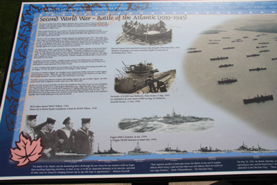 This memorial was erected by the Canada Lands Company, and unveiled on June 6th, 2010. This memorial is dedicated to the men and women who served in the Navy during "The Battle of the Atlantic". The story board include the history of the Second World War and the Battle of The Atlantic (1939 -1945).