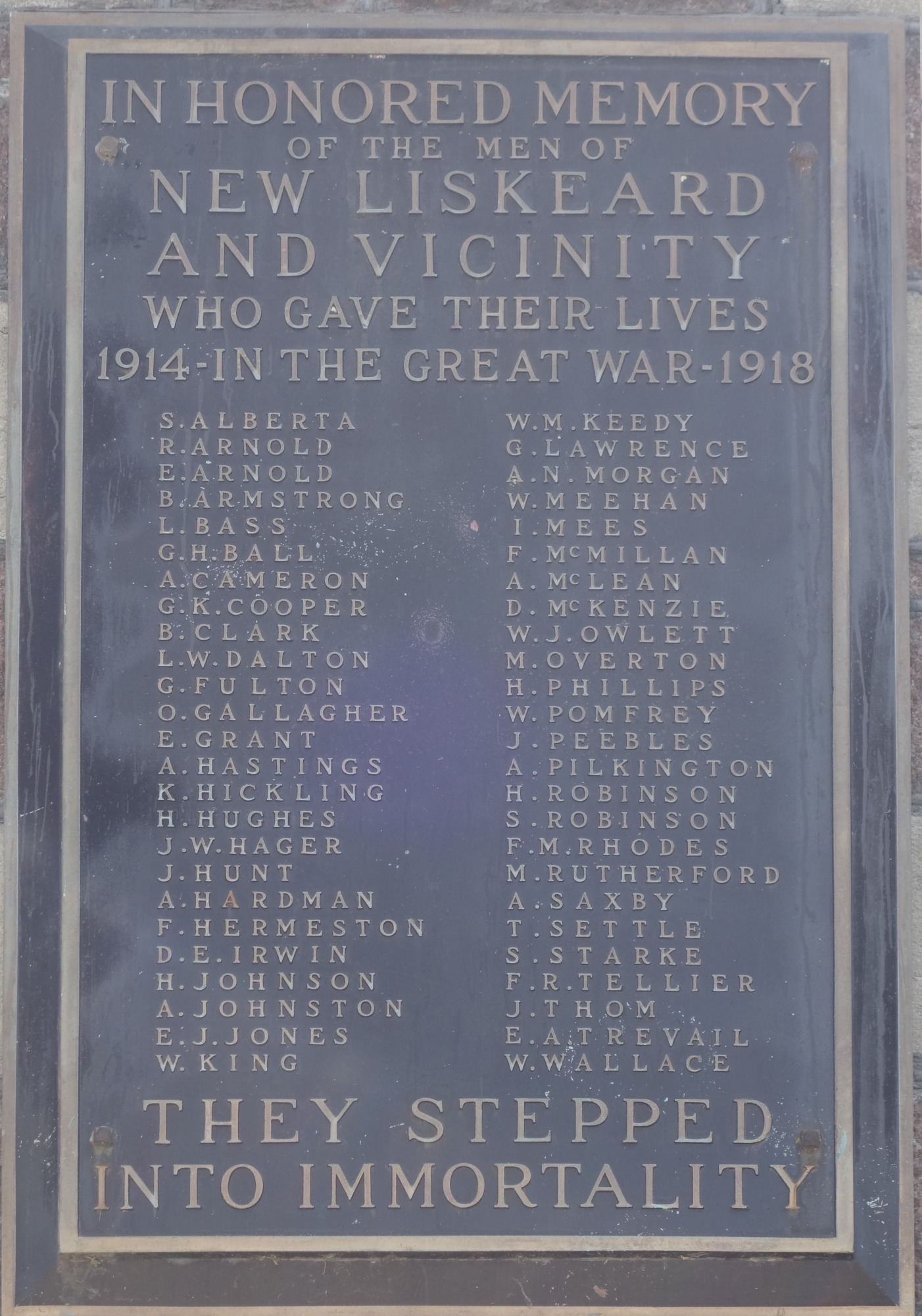 IN HONORED MEMORY OF THE MEN OF NEW LISKEARD AND