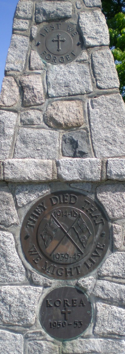 The granite cairn and brass plaques were designed by Legion member F.J. Brisdon. Legion members volunteered to clear the park of stumps and brush, then filled and landscaped the memorial site. An impressive dedication on Remembrance Day 1953 has been faithfully followed with an annual ceremony. The cenotaph now forms an important landmark near the sports oval and was designated as a heritage site by Council in 1992.
