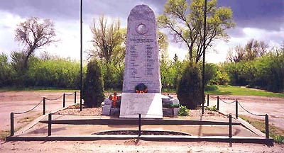 Unveiled by Lieutenant Governor Newlands on 28 June 1923, this memorial was erected by the town of Ogema in honour of the local war dead of the First World War. A plaque was added to the front of the memorial to honour the local war dead of the Second World War at a later time.