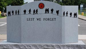 This memorial is dedicated to the Army, Navy, and Air Force Veterans of the First and Second World Wars, the Korean War and all Canadian Forces Veterans. Erected by Veterans, Veterans Residents Council and branches of the Royal Canadian Legion on November 1, 2006. The flags are lowered in respect for each Veteran who passes away in the home.