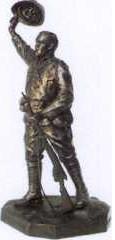 This sculpture, “PAARDEBERG”, depicts a member of 2e Royal Canadian Regiment raising hit helmet in a victory salute at the battle of Paardeberg during the Boer War in 1900. The sculpture was inspired by the painting “Dawn of Majuba” (1900) by Richard Caton Woodville. It was unveiled in March 2013 and is dedicated to current and past members of Royal Canadian Regiment, in particular those who served during the battle of Paardeberg.