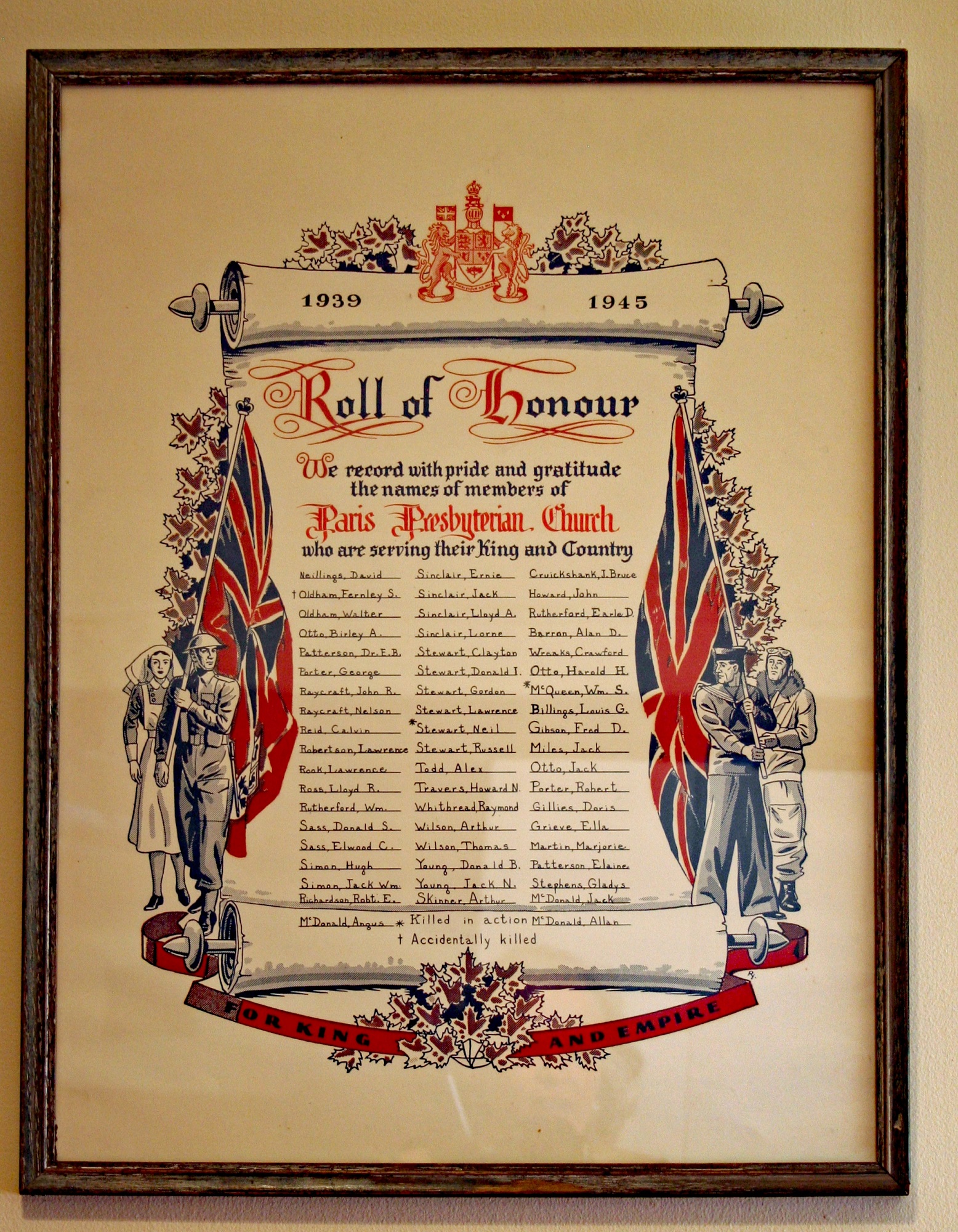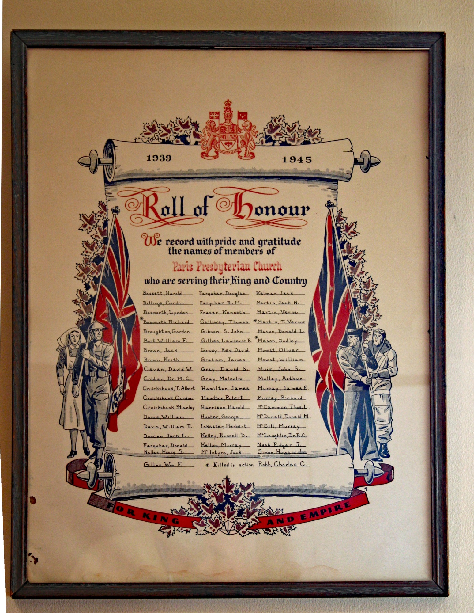 Paris Presbyterian Church Second World War Rolls of Honour