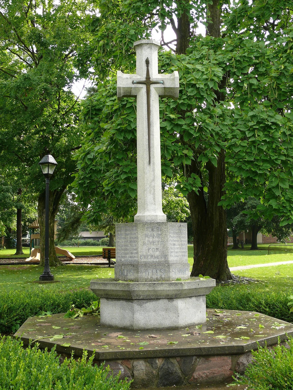 The War Memorial in Coronation Park was erected in 1928. The monument is made of granite, with a bronze sword in memory of Veterans killed in the First and Second World Wars and the Korean War. Relatives of the deceased were given the opportunity to choose the site.