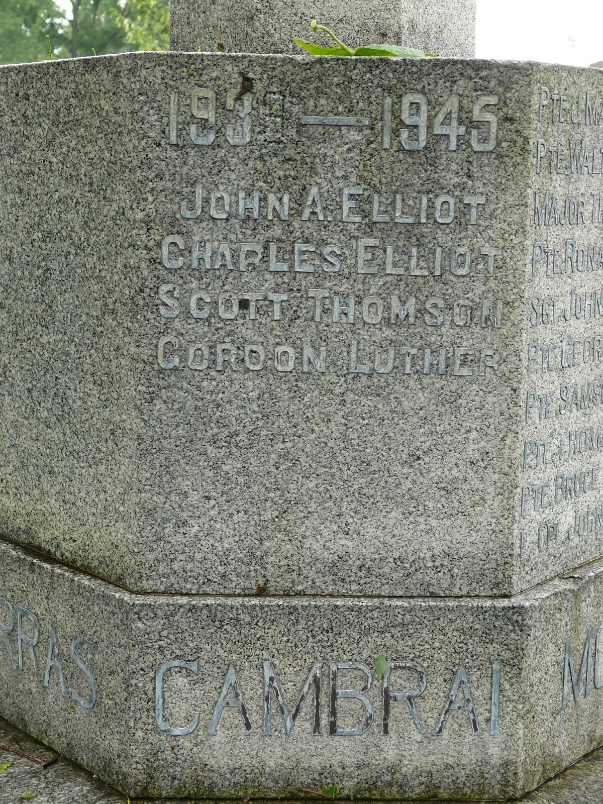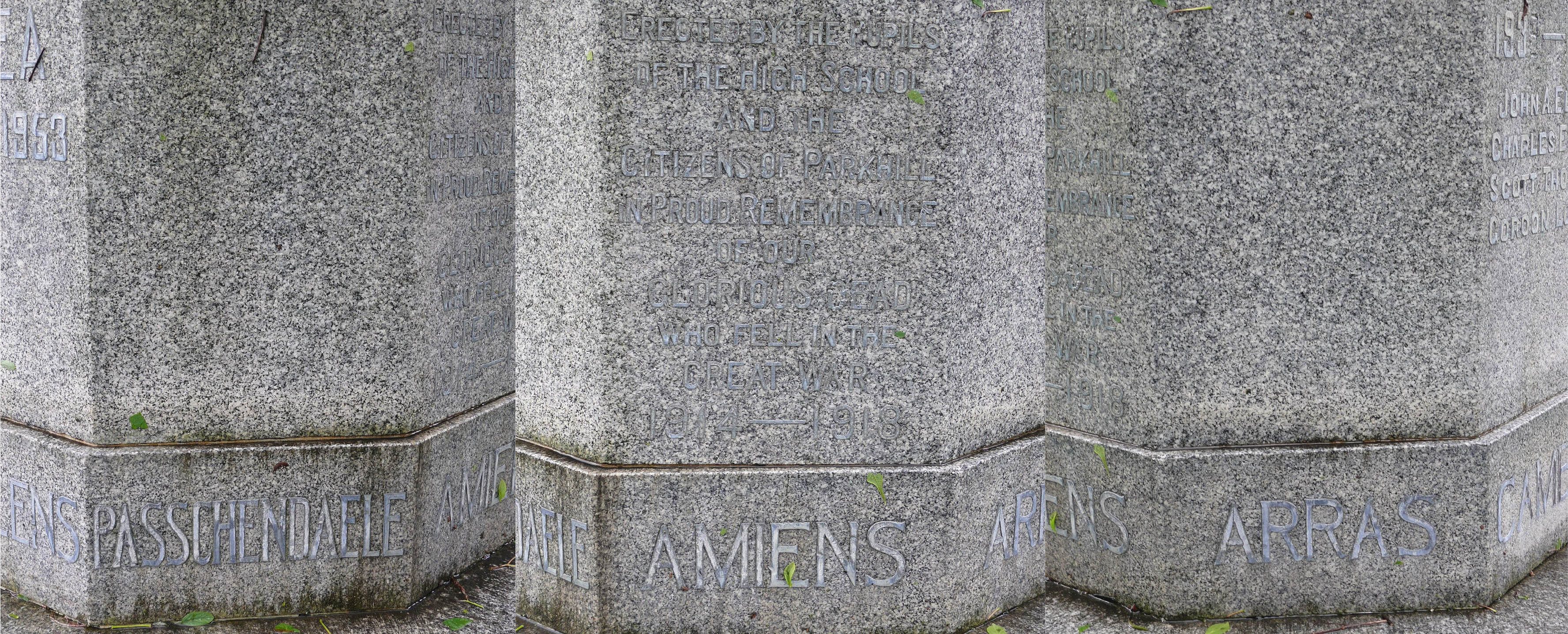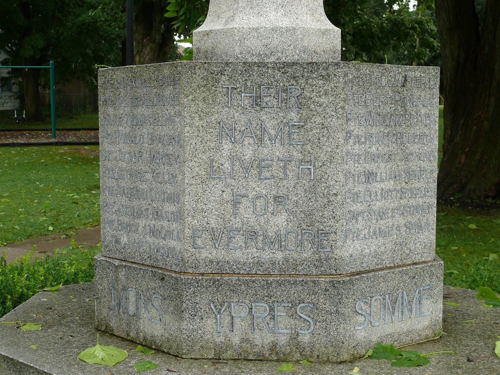 The local Horticultural Society planted trees around the base. The municipality gathers around the memorial every Armistice Day and pays tribute to these fallen heroes, led by the Royal Canadian Legion Branch #341, Parkhill.