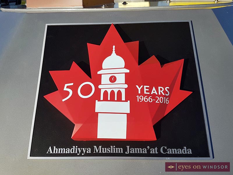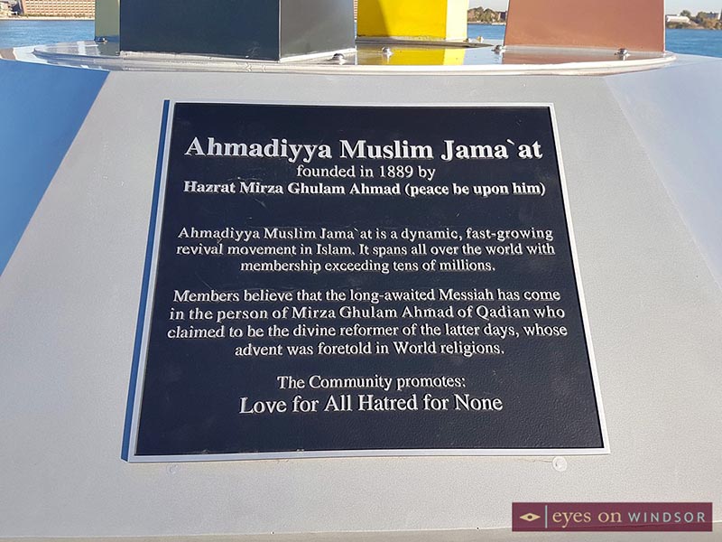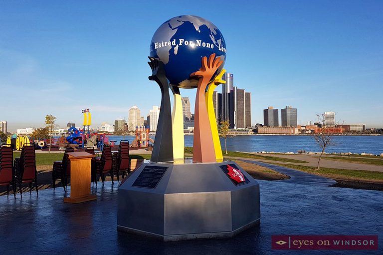 The sculpture, of four different coloured hands coming together together to hold a globe, was donated by Ahmadiyya Jana'at. The sculpture, which represents peace, unity and inclusion of all people celebrates 50 years of Ahmadiyya Jana'at in Canada in 2016. The sculpture was unveiled October 20, 2017.