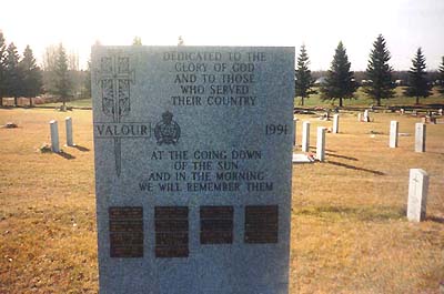This memorial is dedicated to the veterans who served their country. It was erected by the Canadian Legion R.L. Zengel V.C. Branch No. 8.