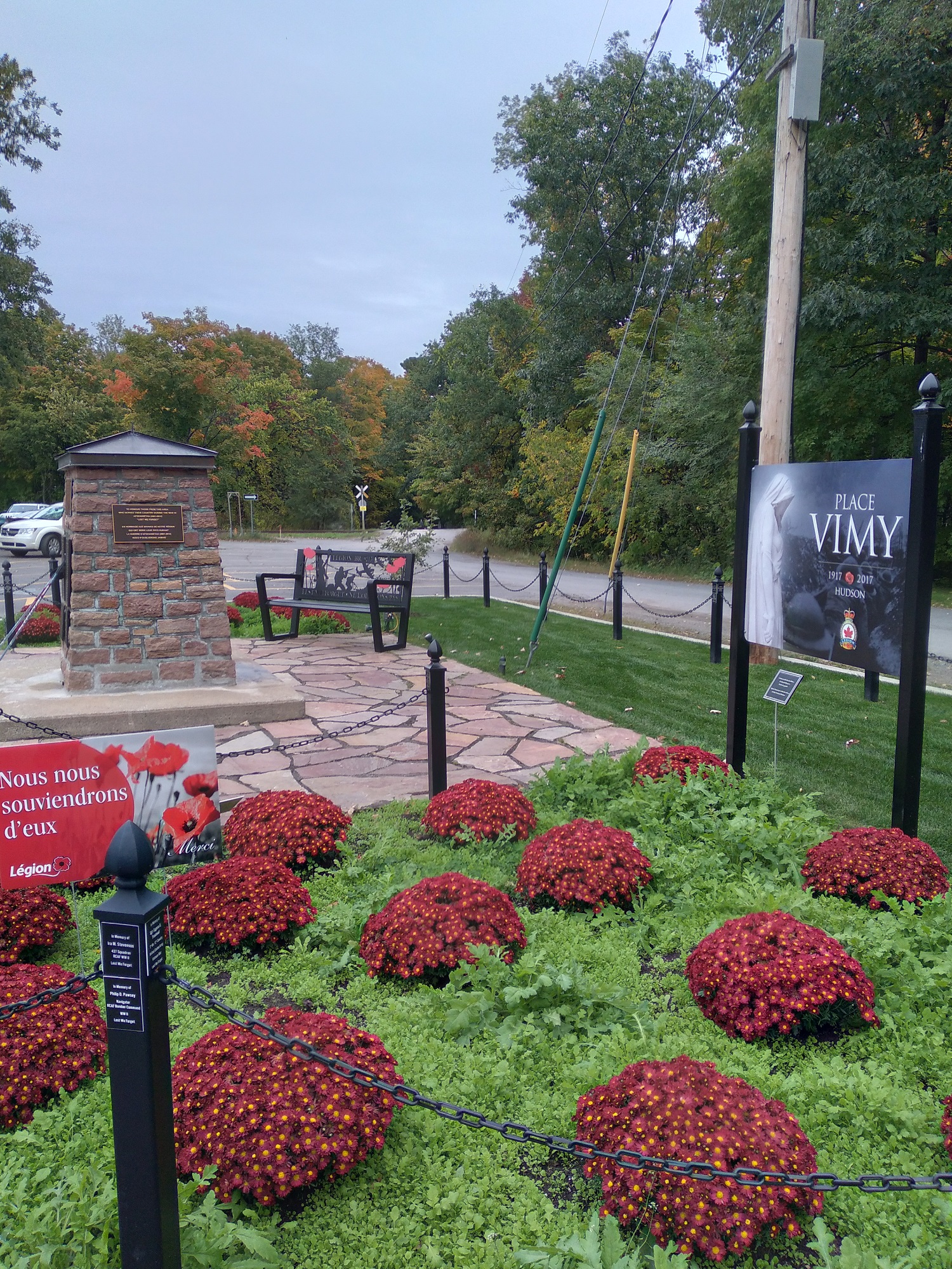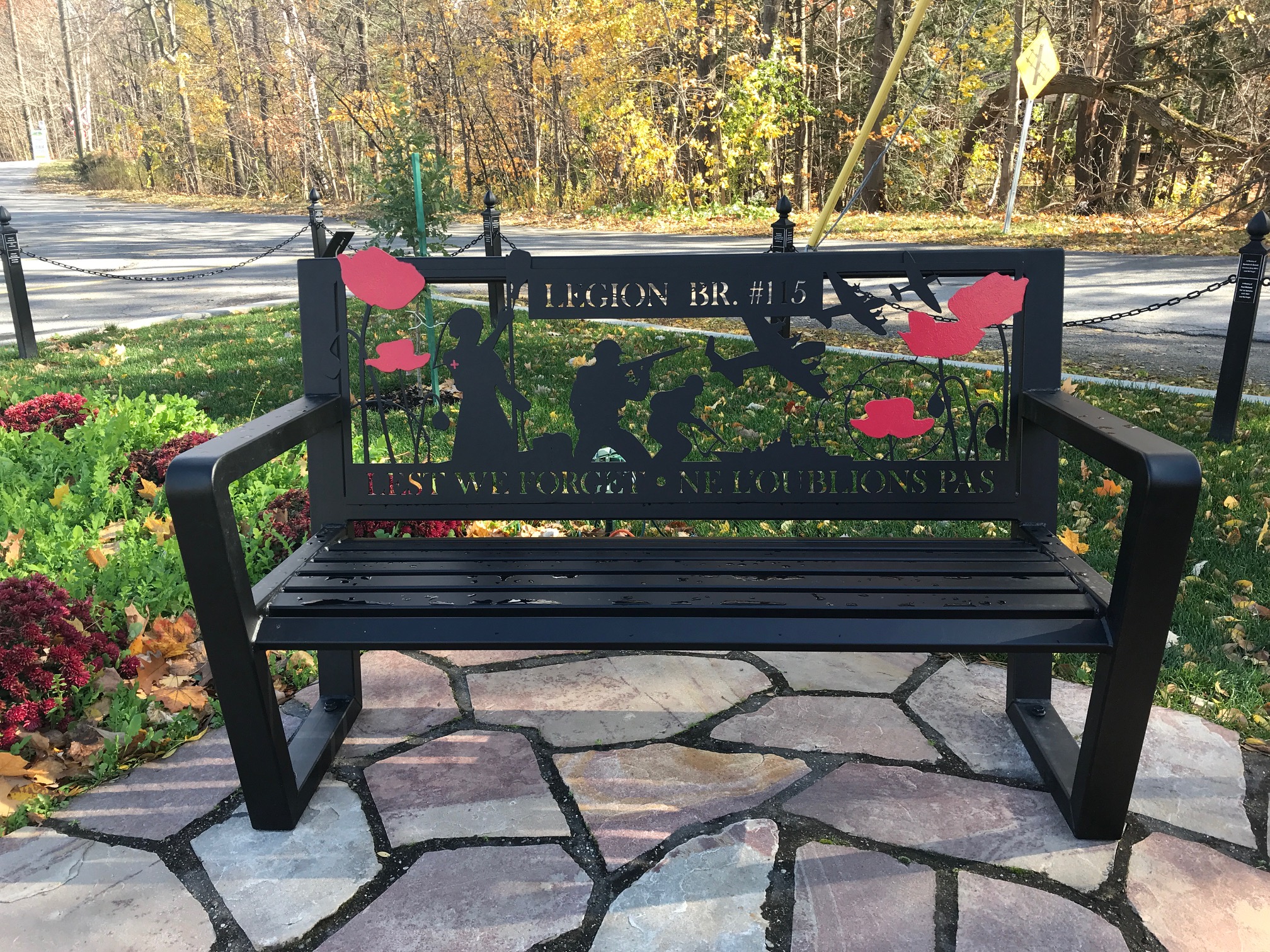 The idea for the bench was conceived by Royal Canadian Legion Branch No. 115 1st V.P. Mike Elliott and designed by Natalie Trainor of St. Lazare. The project got really moving by Executive member Jay Oland and the bench was built by Keith Bonerak of Rigaud in 2020. Legion Executive member Jay De La Durantaye finished the last bit of work on the bench by painting the poppies.