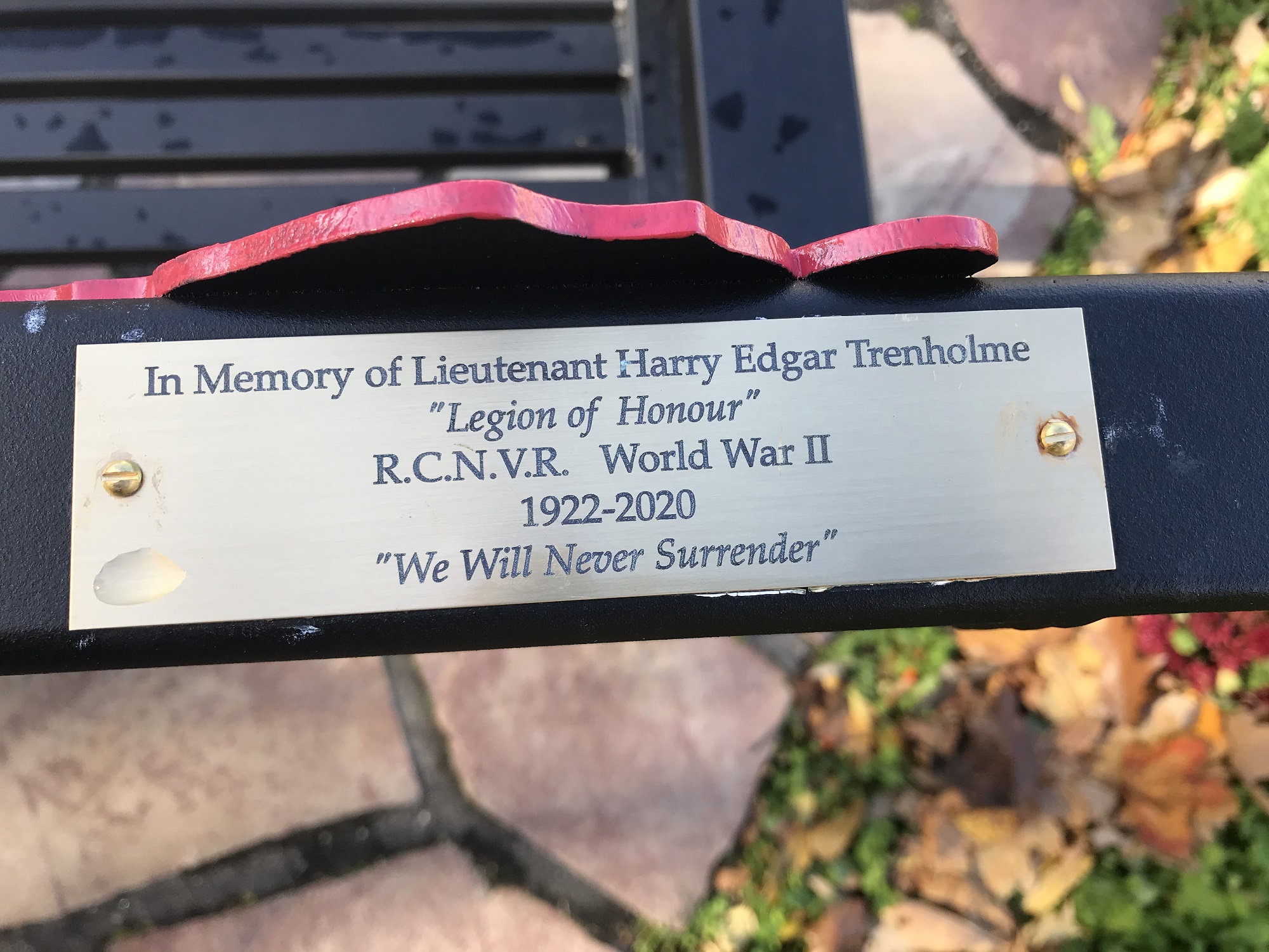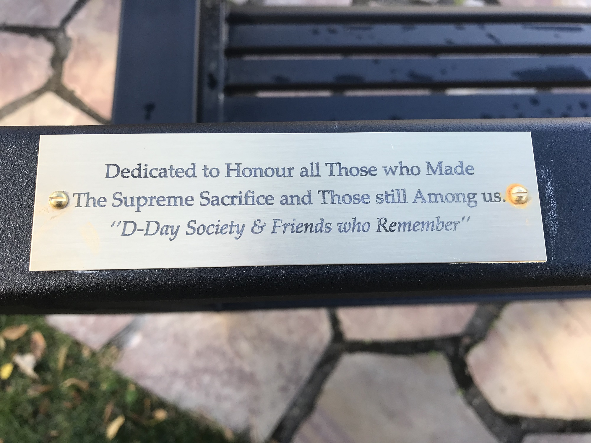 The unique bench was paid for by donations from the family of Lieutenant Harry E. Trenholme, Royal Canadian Naval Volunteer Reserve, Second World War. He was at D-Day on a landing craft and was awarded the Legion of Honour in 2015. The other donor was the D-Day Society & Friends who Remember. This group, of which Harry was a member, was formed in 1945 by those who had been at D-Day.