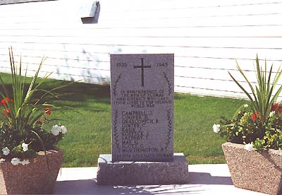 This memorial, erected by Royal Canadian Legion Branch No. 189 in 1998, is dedicated to the memory of the local war dead of the Second World War.
