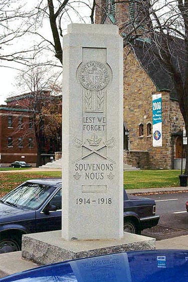 This stele, erected by the Army, Navy and Air Force Veterans in Canada and the Royal Canadian Legion, is dedicated to the citizens of Pointe-aux-Trembles who gave their life for freedom during the two Great World Wars