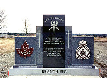 The Memorial was unveiled in 1991 under the auspices of Branch President, Walter Muise, and the members of Branch 143. The occasion was open to the public, and the solemn occasion was attended by M.P., Colleen Campbell, and Municipal Warden, Robert Anthony. Since the unveiling in 1991, there have been Memorial Services, open to the public, on November 11th, each year.
