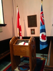 The RCAF Memorial Book lists the names of all those who served in the Royal Canadian Air Force. It is on display at Trinity Anglican Church, and a page is turned daily. It was unveiled by parishioners of Trinity Anglican Church, sometime after World War II.