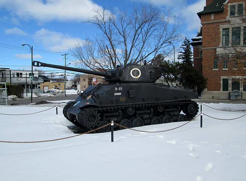 This memorial, a tank (nicknamed Châteauguay) with a brass dedication plaque, is dedicated to the members of the Régiment de Hull. It was unveiled by the Department of National Defence on September 10, 2006.