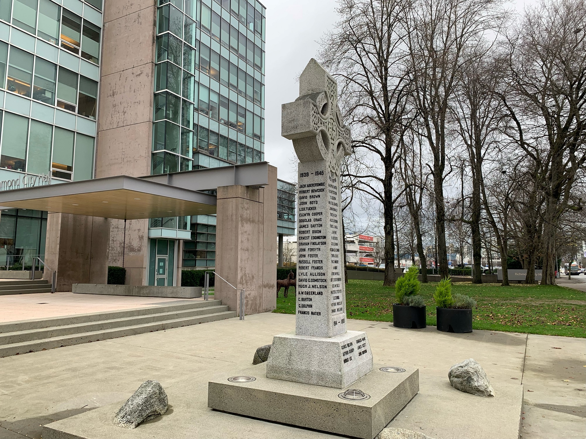 On July 15, 1999, the cenotaph was temporarily moved from city hall to its creator’s shop - William Chandler of W.R. Memorials of Vancouver. It was returned to the site in 2000 when the new city hall was completed. On May 30, 2024, two names were added to the front of the cenotaph.