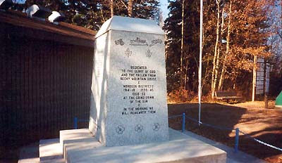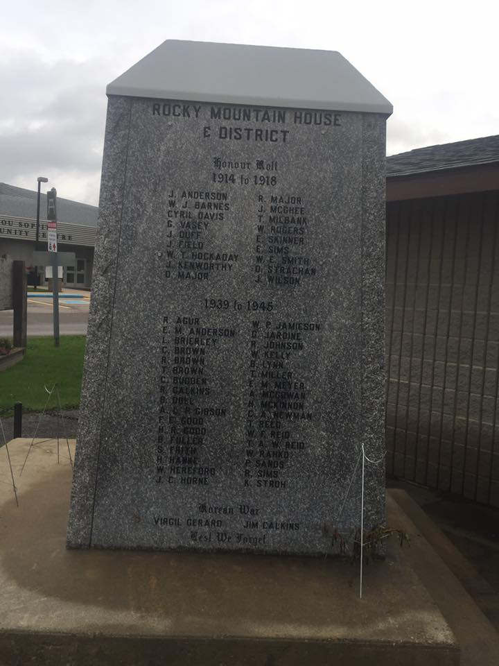 This memorial is dedicated to those who died in the First and Second World Wars and the Korean War. It was erected by the R.L. Zengle V.C. Branch No. 8, the Royal Canadian Legion's Auxiliary, Alta / NWT Command, and Last Post on October 8, 2000 with private and public donations.