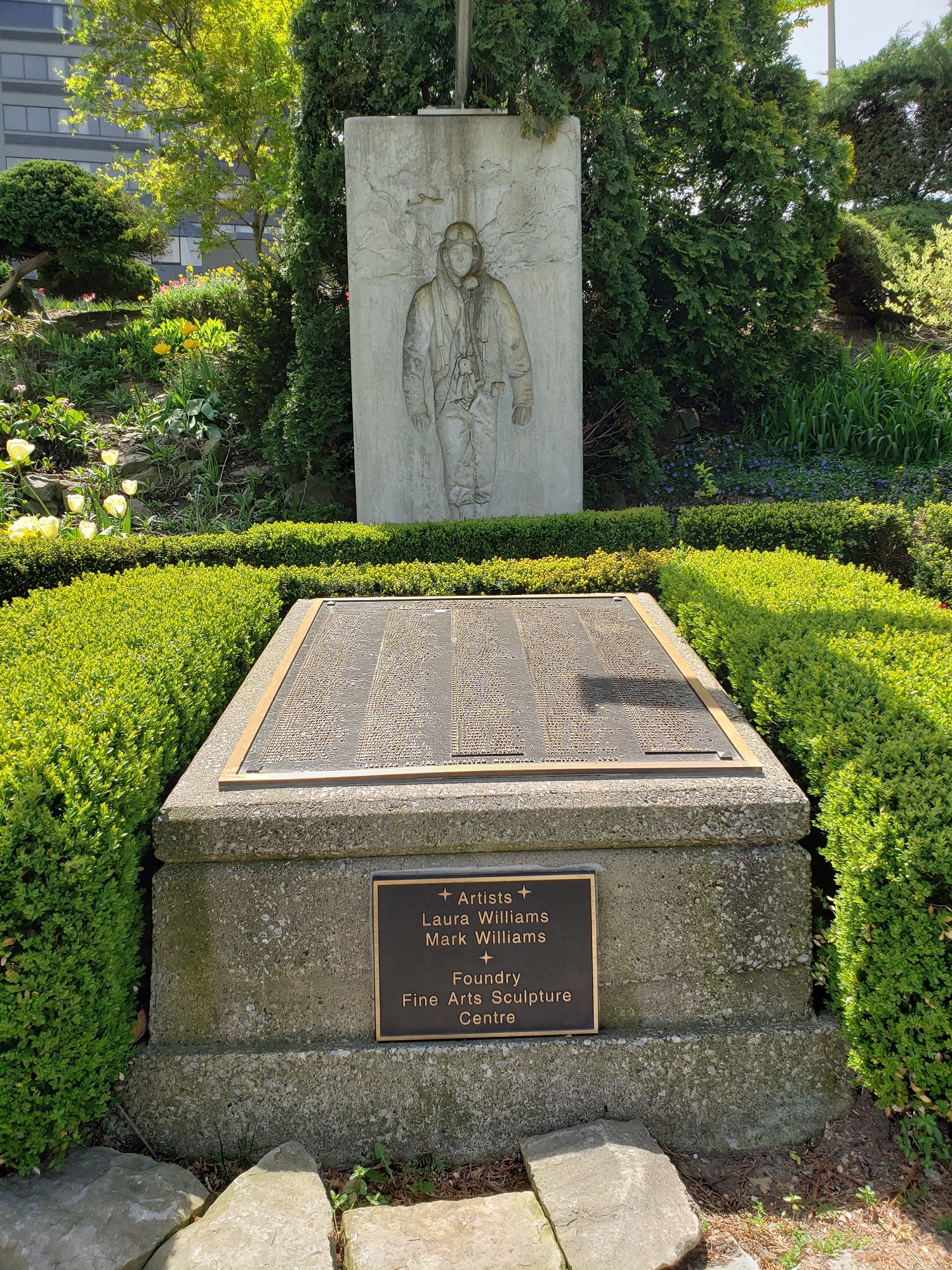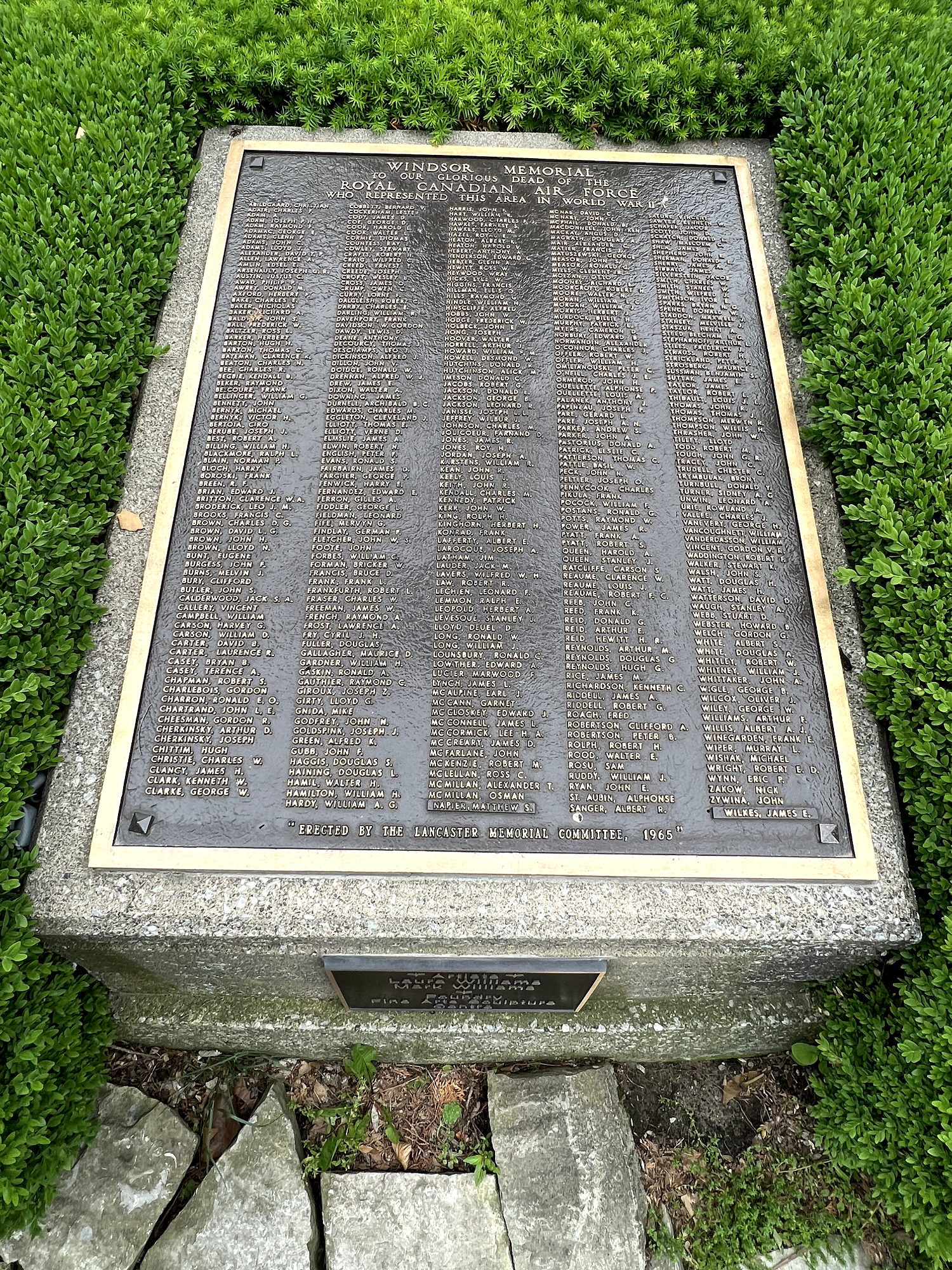 The Royal Canadian Air Force Memorial was designed and created by local sculptors Laura and Mark Williams in 2002, commissioned by the City of Windsor and was unveiled before a crowd of 200 on July 11, 2006. This memorial replaced the deteriorating Lancaster bomber memorial which was located in Jackson Park. The bronze Lancaster memorial plaque honouring Veterans of the Second World War that was displayed in Jackson Park for 40 years was moved to Dieppe Gardens in 2005. It lists the names of 399 members of the Windsor area who died during the Second World War while serving with the Royal Canadian Air Force.