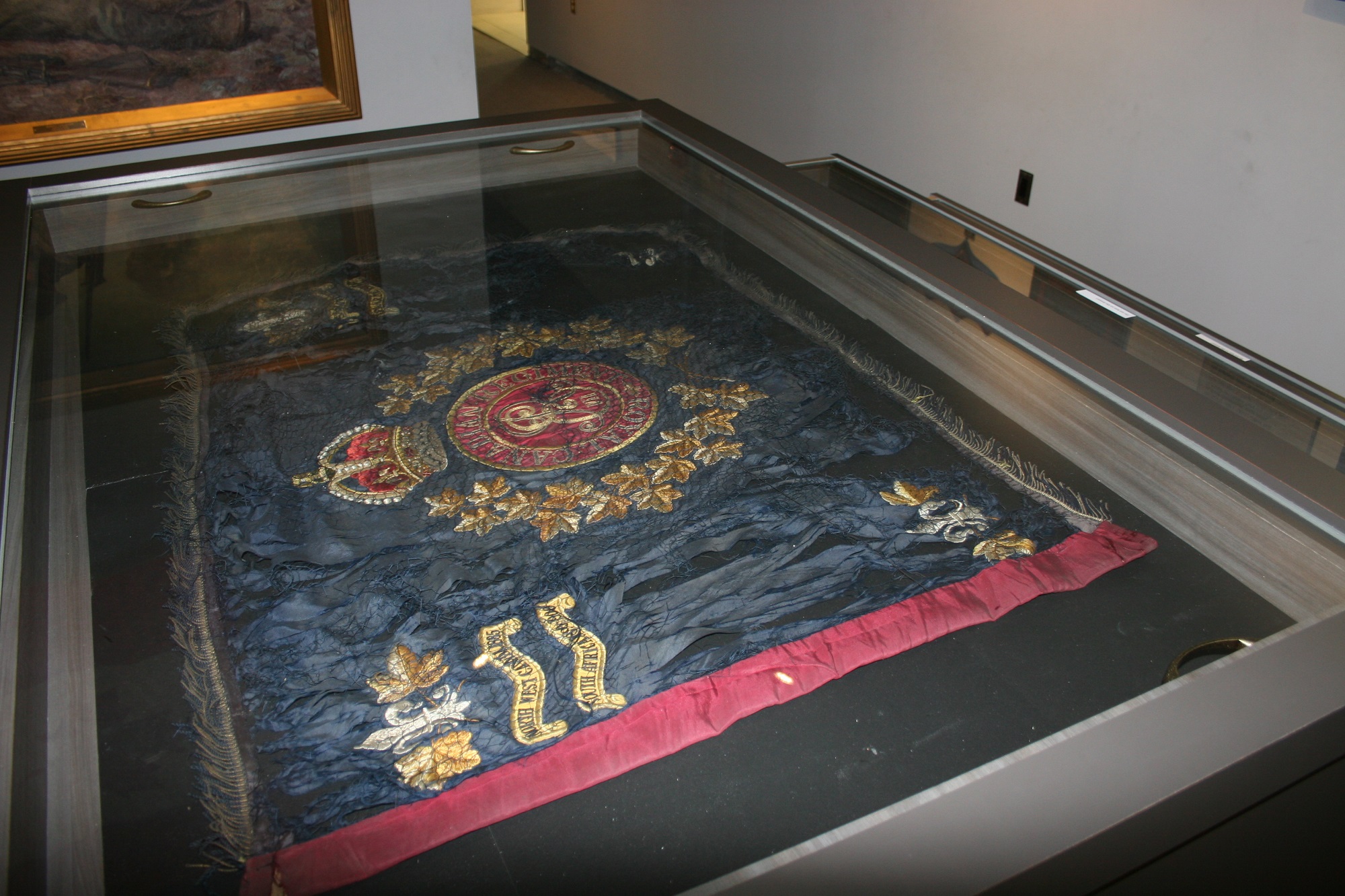 Regimental Colour and King’s Colour were presented to The Regiment for the first time in Toronto on 11 October 1901 by the Duke of York, future King George V. It took five years to emblazon the Battle Honours Northwest Canada and South African War on the newly presented Colours. A Union Jack banner, known as the ‘South African banner’, was presented on behalf of King Edward VII in 1904, in Ottawa, by the Governor General of Canada, the Earl of Minto. Trooping the South African banner was customary on Paardeberg Day and other regimental parades until the late 1920s.
