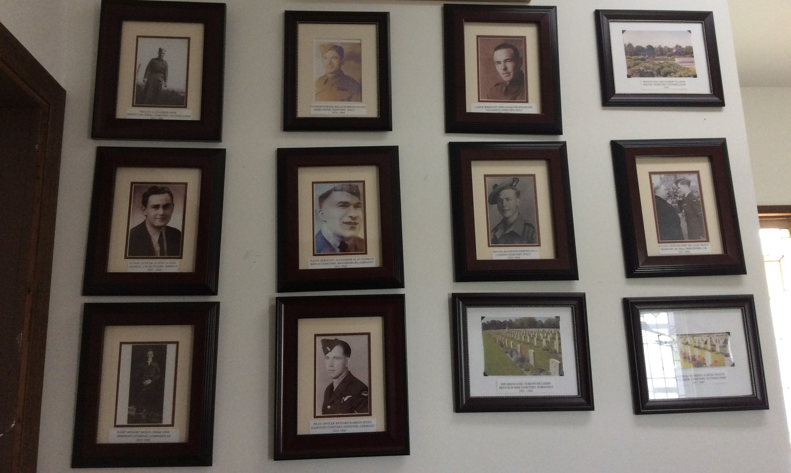 The Remembrance Wall was dedicated during a ceremony on Sunday, September 25, 2011 in Salmo Community Memorial Church. The wall consists of photographs and information about local young men who were killed in the Second World War. The two years of research for this project was completed by Jean Stahl.