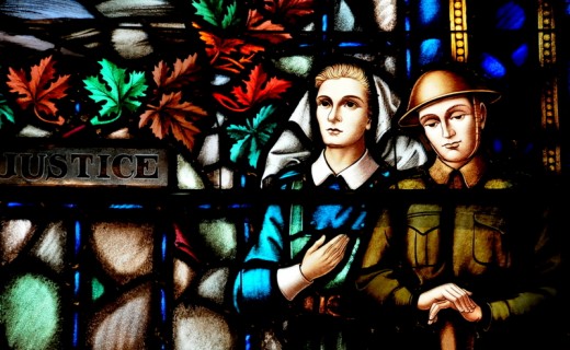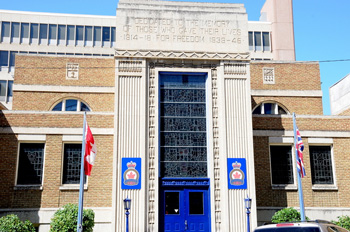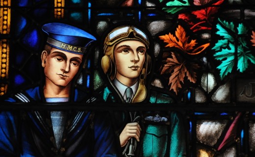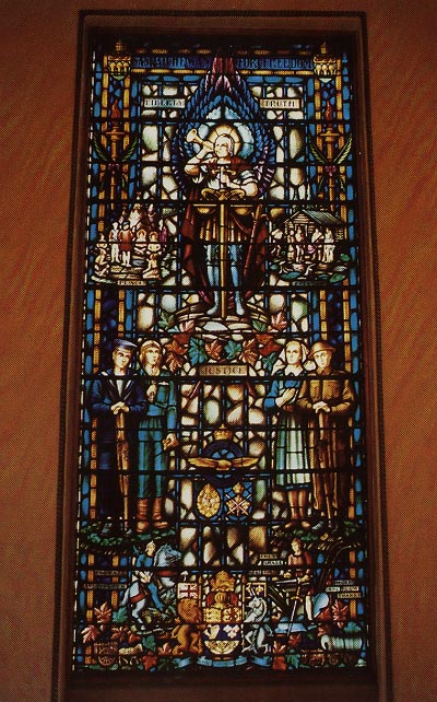 The Saskatchewan freedom window at the Regina Legion entrance was erected in 1955 by R McCausland's WA Anderson as a WWII memorial. The window features a nurse, aviatrix, soldier, sailor, angel of victory and Saskatchewan crest.