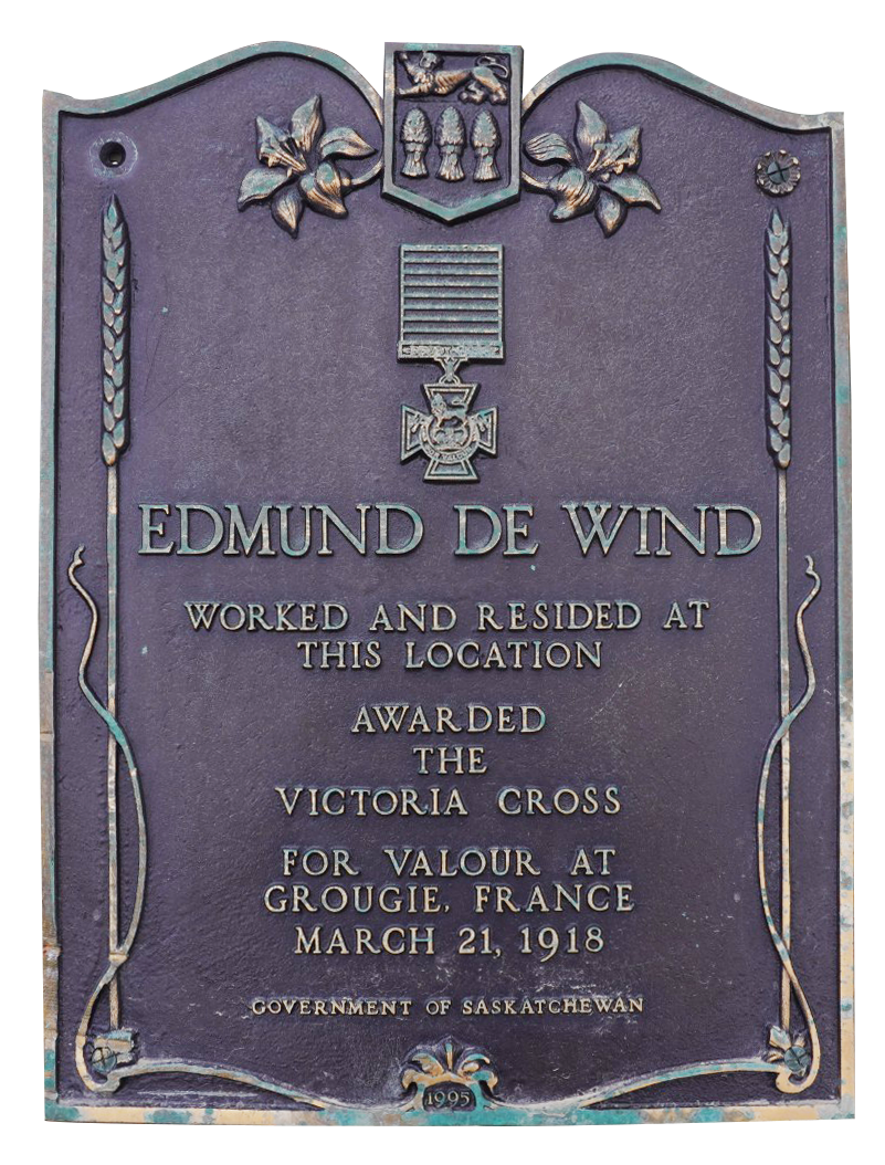 The Second Lieutenant Edmund De Wind Plaque was erected by the Saskatchewan Heritage Foundation, Government of Saskatchewan in 1995.