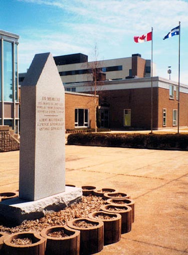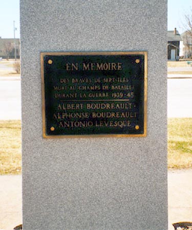 This memorial is dedicated to three men from Sept-Iles who were killed in the Second World War. It was erected by the City of Sept-Iles.