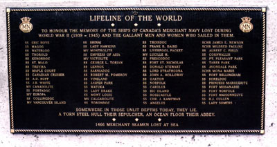 TO HONOUR THE MEMORY OF THE SHIPS OF CANADA'S MERCHANT NAVY LOST DURING