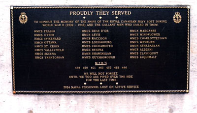 TO HONOUR THE MEMORY OF THE SHIPS OF THE ROYAL CANADIAN NAVY LOST DURING