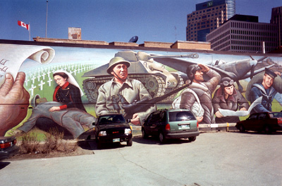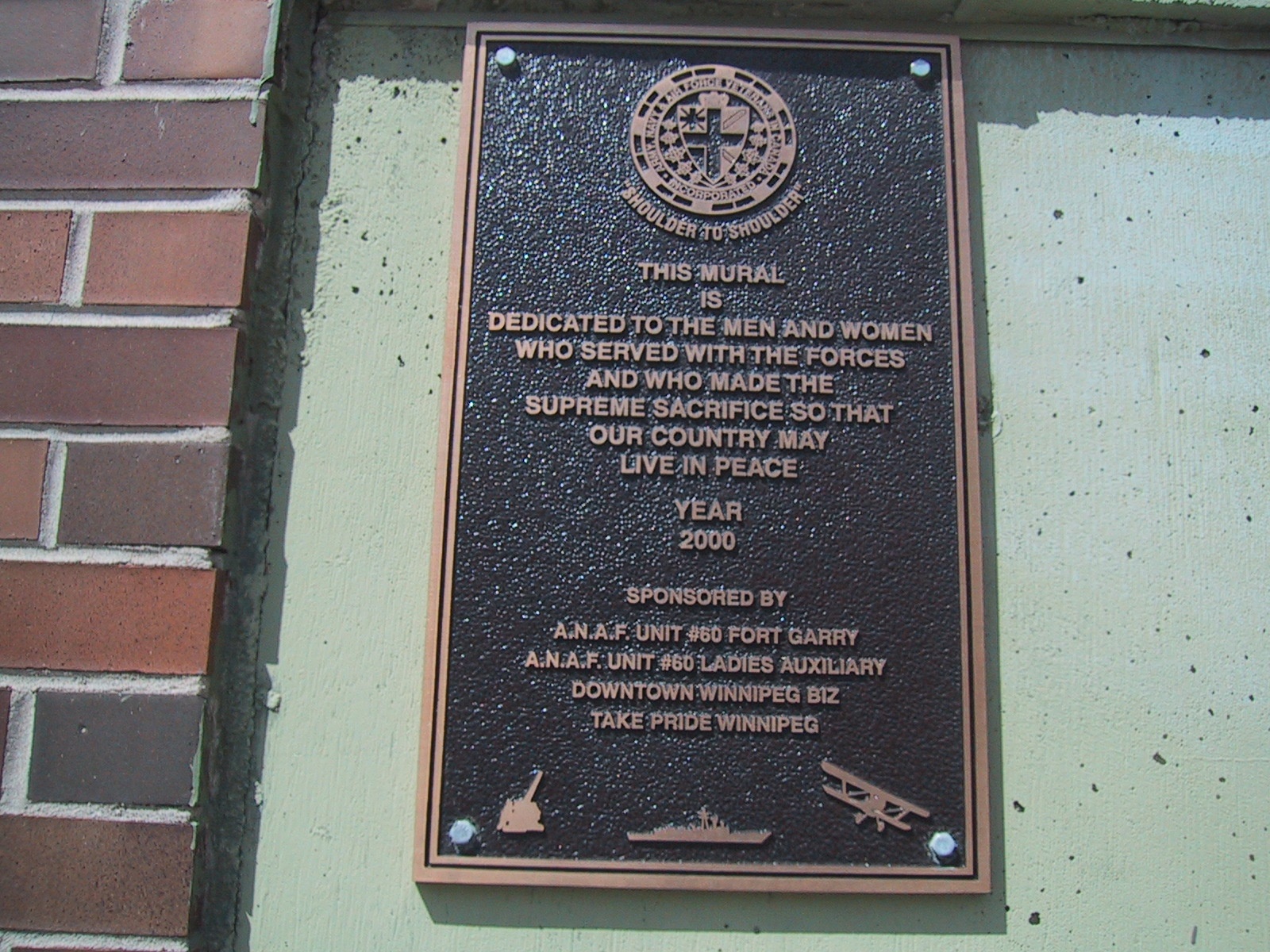 The Shoulder to Shoulder mural was created by artist Charlie Johnston in 2000 and dedicated to all those who served their country in war and paid the supreme sacrifice. His mural begins with the poem For the Fallen by Lawrence Binyon. It symbolizes someone reading and reflecting on the Veterans.