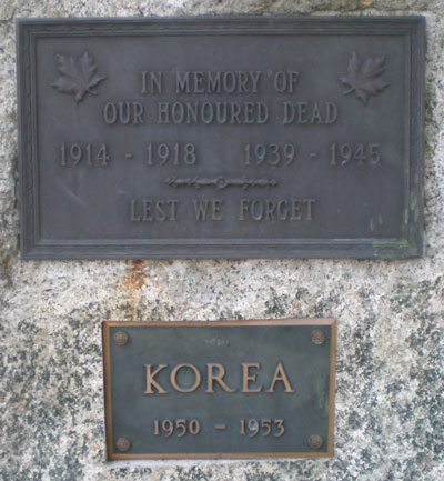 The Squamish Cenotaph was constructed in memory of Our Honoured Dead 1914-1918 - 1939-1945. Later, a second plaque was added to the cenotaph in memory of the Korea war. The Cenotaph is used for the wreath laying ceremonies on Remembrance Day each year. The Cenotaph also is used for the Flag Raising Ceremony each year on July 1.