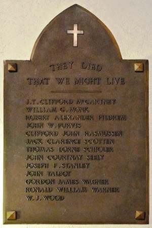 Erected by the St. James the Assiniboine Anglican Church, this Second World War plaque is dedicated in honour of those named. See also memorial 46010-069.