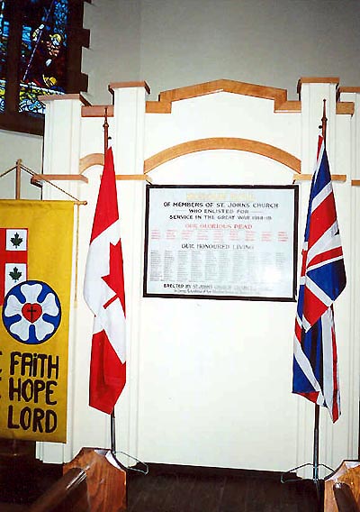 Erected by the Chancel Guild of St. John's Cathedral, this memorial is dedicated to the members of the congregation who were veterans or war dead of the First World War.