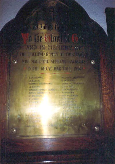 This memorial is dedicated to the members of St. John's Cathedral Parish who died in military service during the First World War.