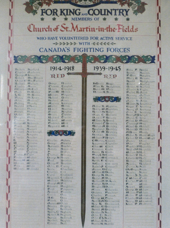 The St. Martin-in-the-Fields First World War Service Memorial is located at the back of the church.