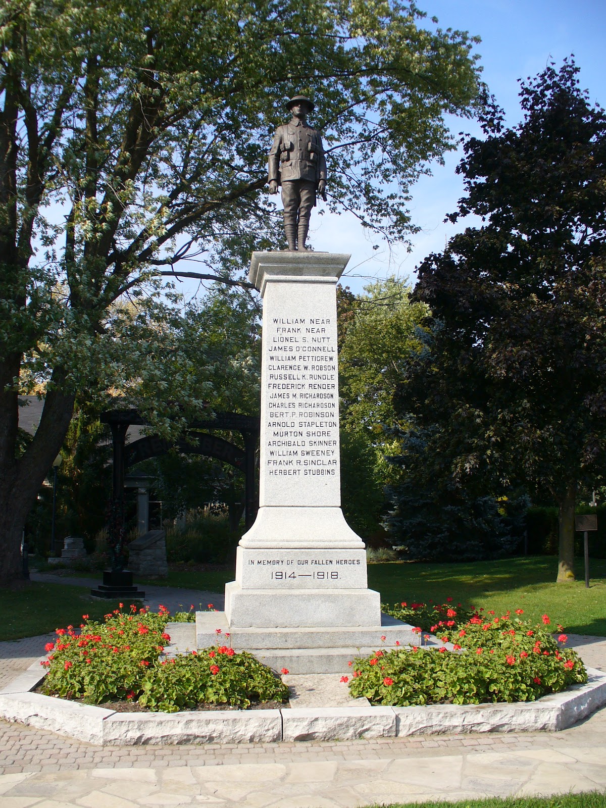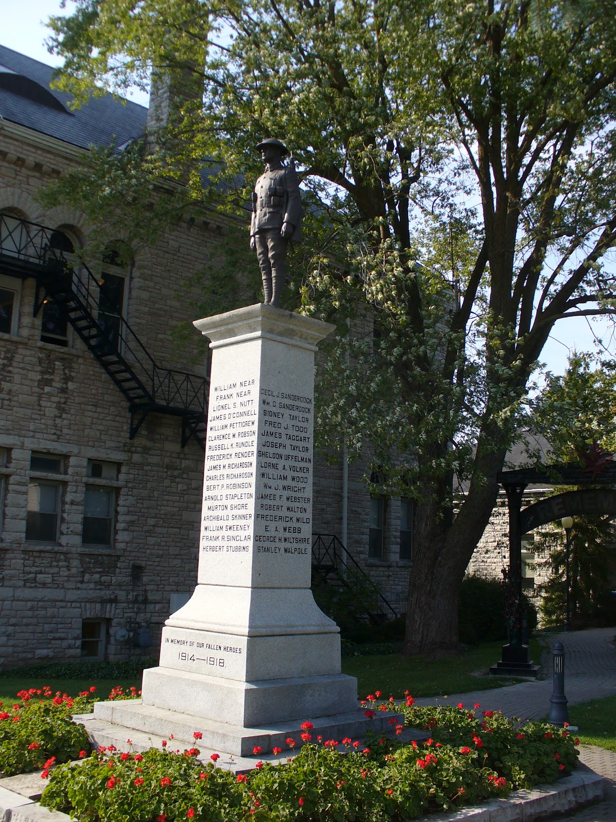 The first official Armistice Day ceremony held in St. Marys did not occur until 1924 and was organized by the Women’s Institute. These ceremonies continue to be held annually at the St. Marys Cenotaph. The area surrounding the cenotaph was officially named Memorial Park in June 2008 to commemorate the citizens of the community who served, or who will serve.