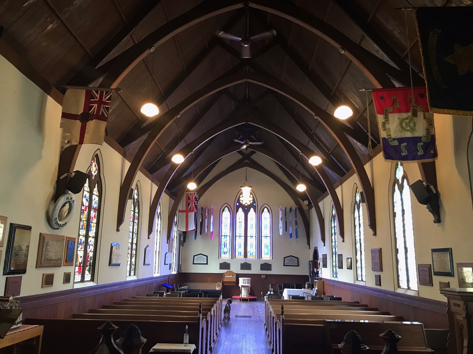 The Colours were laid up on 25 Nov 1959 in St. Paul’s Naval and Garrison Church at the request of the Commanding Officer, Lieutenant-Colonel J.C. Allan, DSO, MBE, CD. Princess Patricia's Canadian Light Infantry is affiliated with the church, dating from 1920 when B Company was stationed at Work Point Barracks. The church has three plaques commemorating the service of Patricias who died while serving in Esquimalt. In army circles, the church is still known and fondly referred to as the "Garrison Church.”
