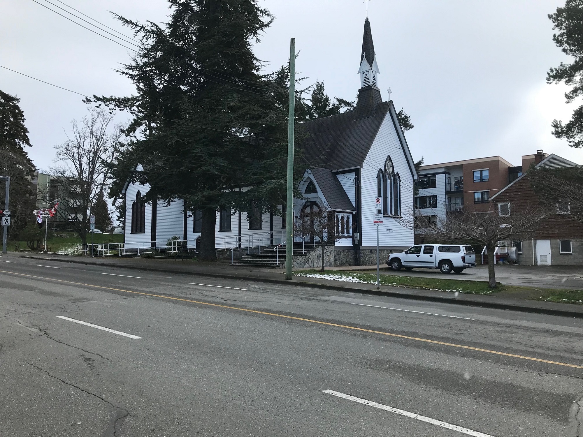 St. Paul’s Church was built in 1866 on the water’s edge at the foot of Signal Hill. Before that time, dating back to 1858, Anglican services were held in the little school building that once stood on that site. Also, previously, Anglican services were conducted by Royal Navy chaplains aboard their ships for naval personnel and the growing population around Victoria.