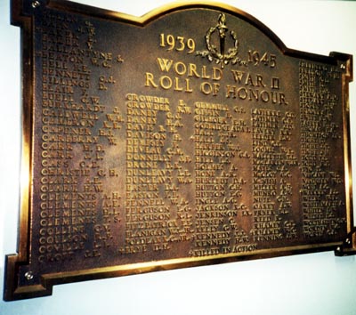 The memorial is dedicated to those who served and those who died in the Second World War. It was given to the Royal Canadian Legion Branch #96 when the Stetson Hat Company ceased operations in Brockville.
