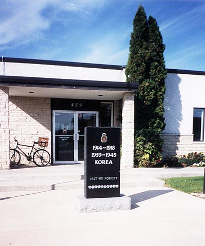 This memorial to the First and Second World Wars and the Korean War was erected by Royal Canadian Legion Branch No. 52.