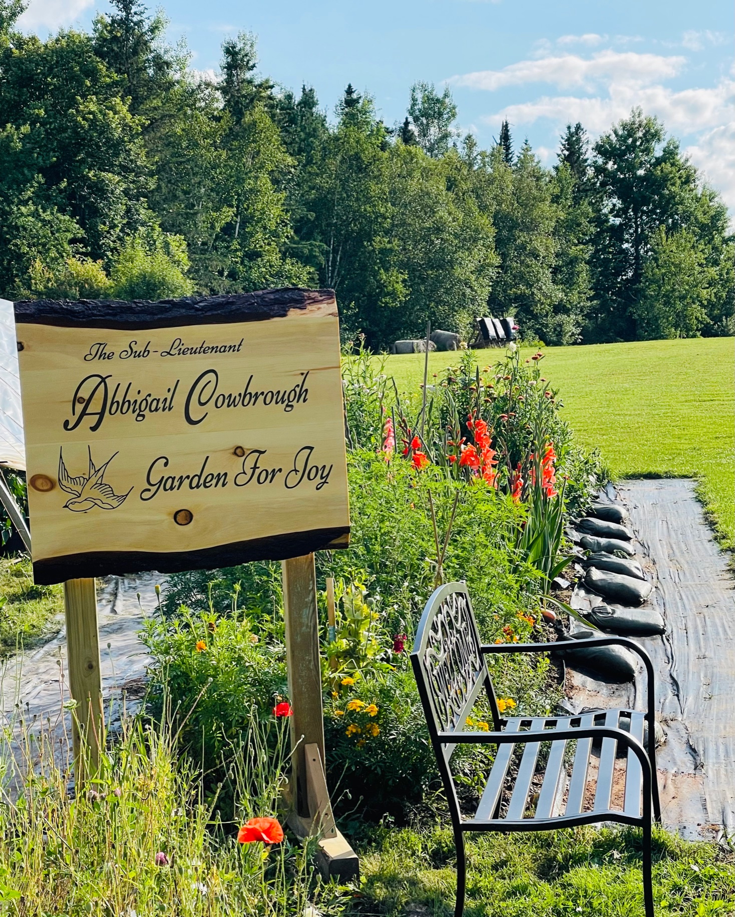 The Sub-Lieutenant Abbigail Cowbrough Garden for Joy was dedicated on July 30, 2021. About 25 attendees gathered while Jessica Miller, who owns the Veteran Farm Project along with her husband Steve Murgatroyd, began the ceremony. Guests included Abbigail's father S1 Shane Cowbrough; military personnel; Kody Blois, MP Kings-Hants; Royal Canadian Legion representatives; farm staff and volunteers.