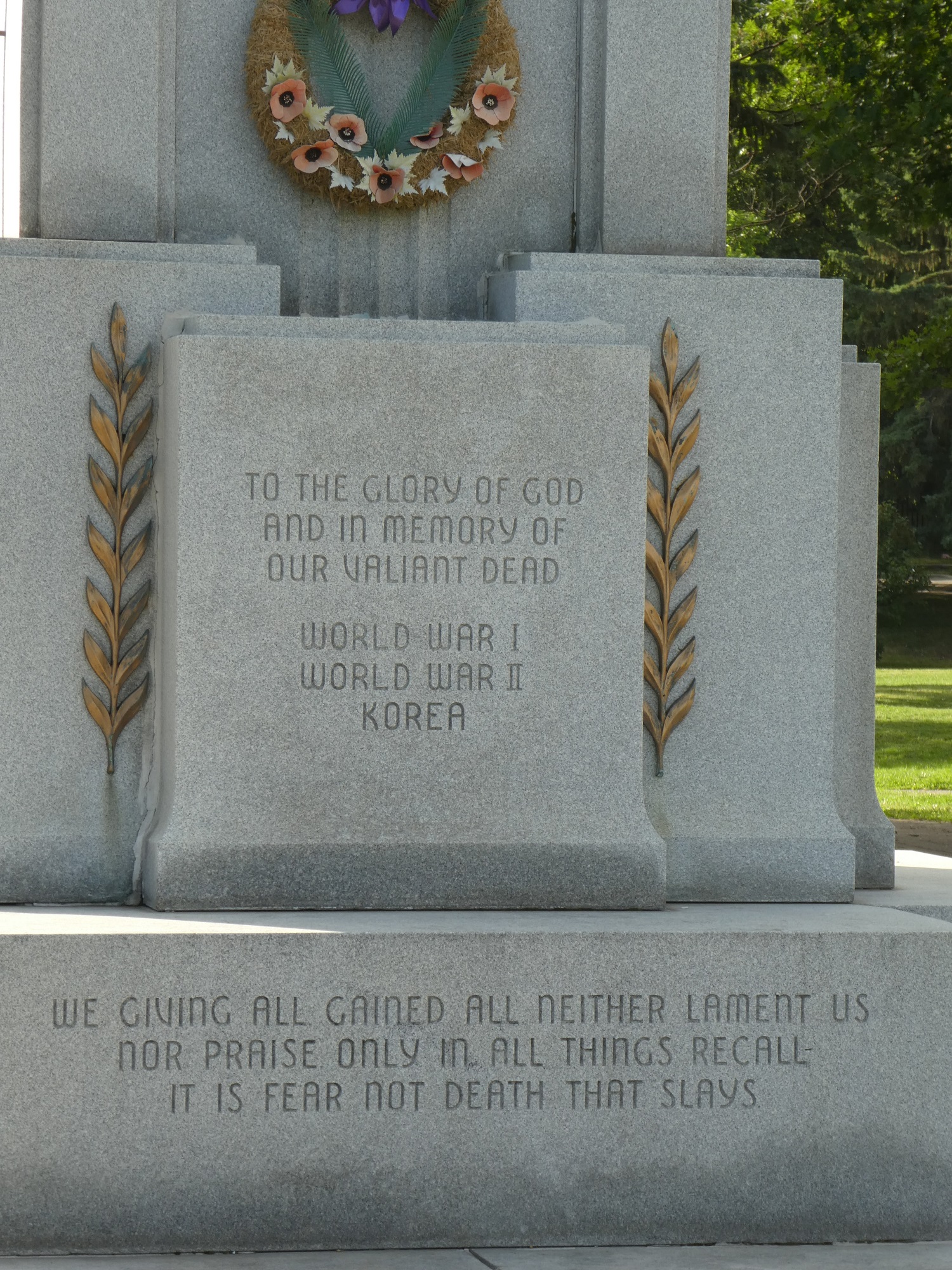 Remembrance Day ceremonies were held at this Cenotaph every year until 1985. Since then, services are held in the Sudbury Arena but wreaths are placed on the Cenotaph on Remembrance Day and throughout the year.