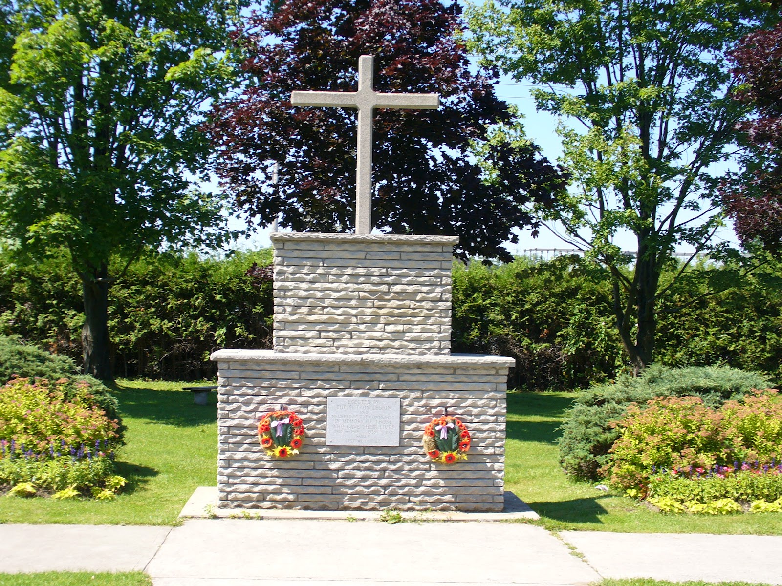 This cenotaph with a cement cross was dedicated to members of Georgina Township and community who gave their lives during the First and Second World Wars, and the Korean War.