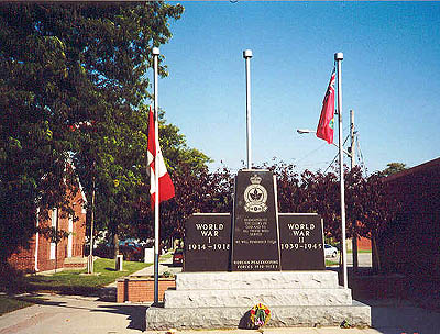 The Tilbury Cenotaph was erected on May 7, 1987 and dedicated to all Veterans. It was erected by the Tilbury Royal Canadian Legion Branch 206. The cenotaph is 15 feet by three feet, weighs 36,000 pounds and is made of granite.